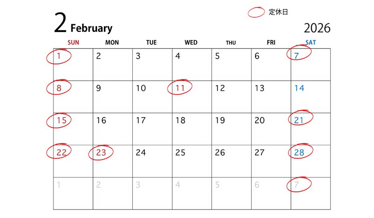 2月カレンダー 2026 2/05 お知らせ 2026年2月5日 いつもお世話になります。2月カレンダーをお知らせ致します。 本社営業時間 8:00~17:00店舗営業時間 9:30~18:30 お知らせ よかったらシェアしてね! URLをコピーしました! 1月カレンダー 関連記事 1月カレンダー 2026年1月1日 12月カレンダー 2025年11月26日 11月カレンダー 2025年10月31日 10月カレンダー 2025年9月26日 9月カレンダー 2025年8月29日 8月カレンダー 2025年7月24日 7月カレンダー 2025年6月29日 6月施行!熱中症対策の義務化 職場環境を見直しませんか? 2025年6月11日